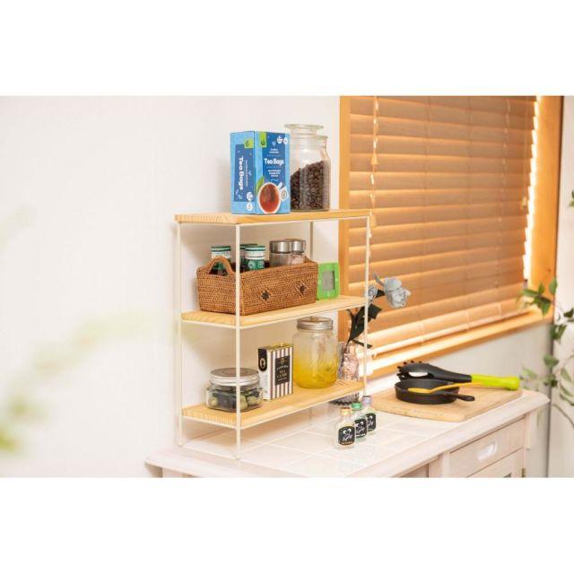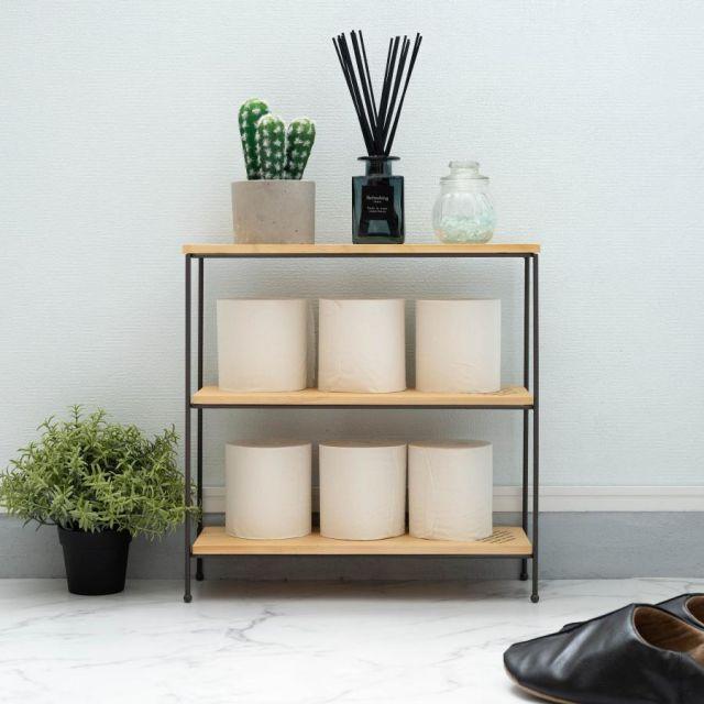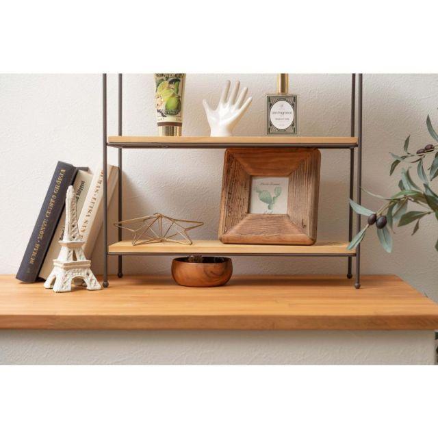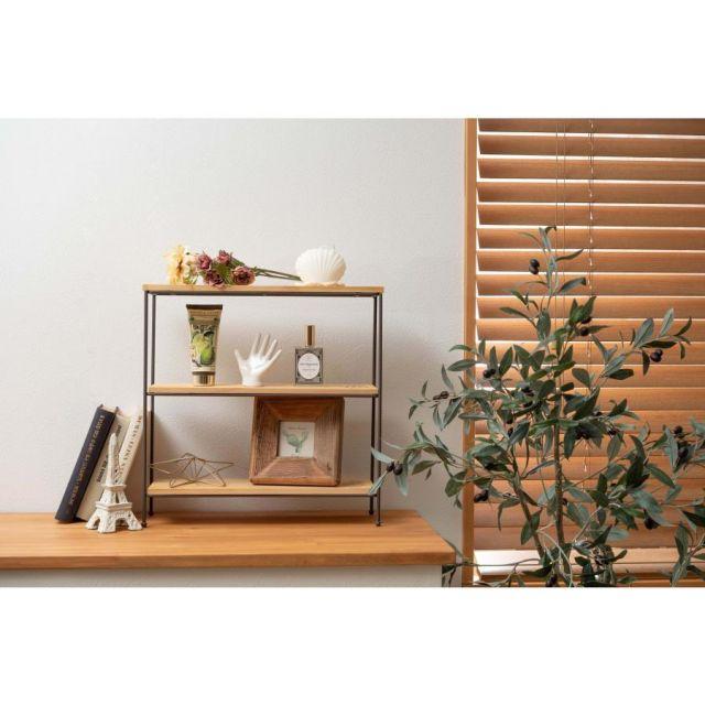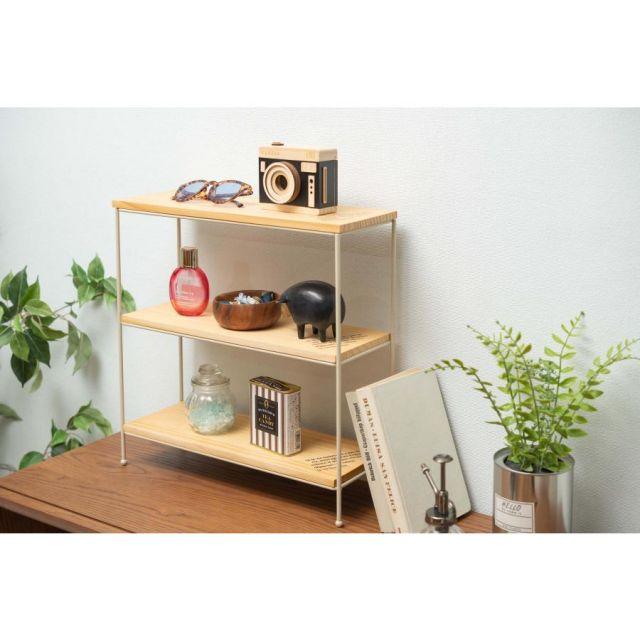 ◎天然木(パイン)とスチールの、シンプルで使いやすい多目的オープンラック。◎人気のヴィンテージやシャビーテイストのお部屋にも合う、異素材を組み合わせたデザイン。◎幅40×奥行14cmのコンパクトサイズなので、置く場所を選ばないサイズ感。◎お部屋のちょっとしたスペースに置ける3段オープンラックなので、ごちゃつきがちな雑貨や小物をおしゃれに魅せながらすっきり収納できます。◎リビングやダイニングはもちろん、ベッドルーム、キッチン、トイレ、洗面所、デスク周り、玄関などあらゆる場所におけるマルチラック。