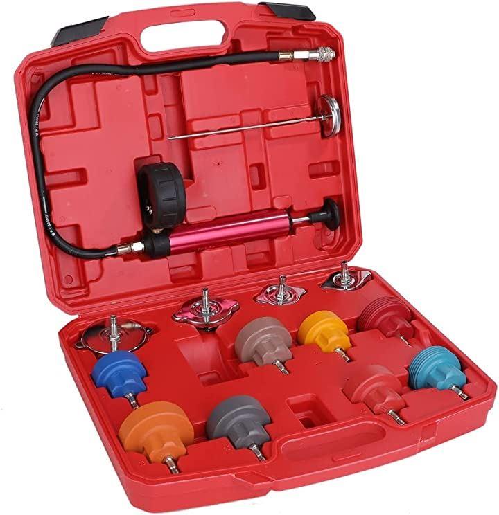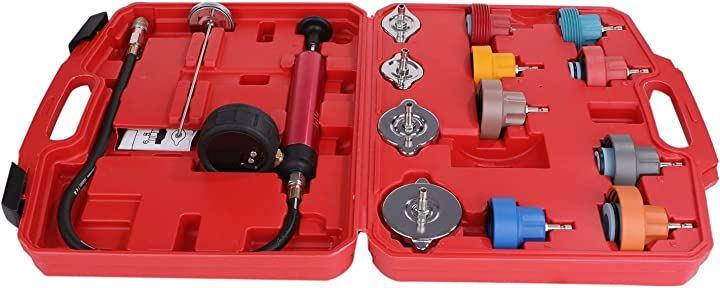 ラジエタープレッシャーテスターがお手元にありますと、簡単に点検が可能になりますのでガレージに準備しておけば安心です。