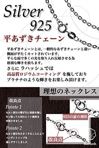 【Web限定販売価格】生産工場から直でのWeb限定販売の為、一切の経費を排除しリーズナブルな価格が実現出来ました。(サイズにより銀の使用量で価格を算出しています。)【シルバー925 平あずきチェーン】ネックレスチェーンの人気アイテム!太さは2mm/2.5mmの2種、長さは45cm~60cmまでの4種、全8バリエーションからお選びいただけます。留め具はつけやすく丈夫な「引き輪タイプ」・「925」刻印入りです。「さりげない品格ある大人なオシャレ」を楽しみたい方へおススメです!【高品質ロジウムコーティング】シルバー925素材のチェーンを、強度が高いロジウムコーティングで保護。シルバーアクセの弱点である「水・キズ・黒ずみ」から守り、毎日の使用にも耐えられる耐久性を実現しました。シルバーの変色もありませんのでお手入れ不要。いつでもプラチナのような美しく輝くチェーンをご着用いただけます。又、ロジウムはアレルギー性の極めて低い素材です。コーティングなしのシルバーチェンは白に近い色ですが、ロジウムコーティングのチェーンは銀色に近いプラチナのような光沢が楽しめます。あまりにも白すぎるチェーンを敬遠される大人の男性に支持されています。【ポーチセット】シルバーチェーンの保管に最適な専用のロゴ入りポーチに入れてお届けします。おしゃれを楽しみたい大人の男性へのプレゼントとしても。オプションでギフトラッピングをお選びいただくとラッピングやメッセージカードと一緒にお届けします。※「ギフトの設定」よりお進みください。【商品仕様】○サイズ:《幅 2.5mm・長さ 60cm》○素材:シルバー925(ロジウムコーティング) ○セット内容:ブランドロゴ入りポーチ・ジュエリークロス・メンテナンスカード ○保証:検品を徹底し品質向上に努めていますが、不良品などございましたらご購入から30日以内の場合、返品・金額の払い戻しにて早急に対応させていただきます。 ○ブランド:RaHash (商標登録第6221209号)