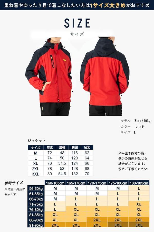 「利用シーン」登山、釣り、バイク、アウトドア、キャンプ、サイクリング、スポーツ、防災など 「機能」*ジャケット:撥水加工(耐水圧15,000mm)、防風、防寒 「カラー」ネイビー、ブラック、ブラウン、グリーン、レッド 「重量」ジャケット約520g 「メイン素材」ポリエステル 「サイズ」M~3XL 着丈 /肩幅/胸囲 /袖丈 [M] : 72 / 48 / 116 / 62 [L] : 74 / 50 / 120 / 64 [XL] :76 / 51.5 / 124 / 66 [2XL] :78 / 53 / 128 / 68 [3XL] :80 / 54.5 / 132 / 70