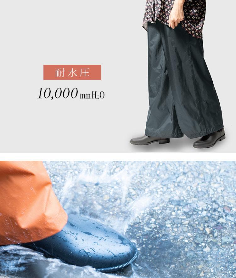 【ワイドレインスーツ】ワイドパンツの上からも着られるワイドシルエットのレインパンツ。傘と併せて、足元を守りお散歩やちょっとしたお出かけに。ゆったりシルエットのワイドデザインなので、身体のラインをひろわず、体型カバーもでき着痩せ効果抜群です!