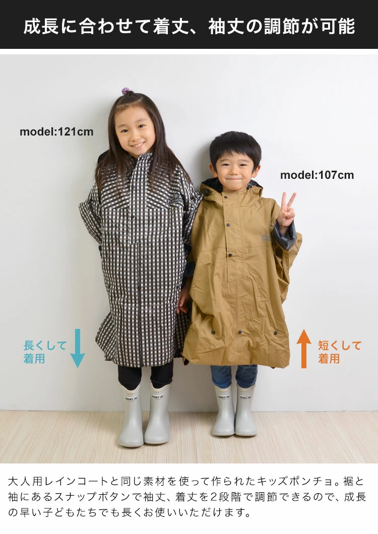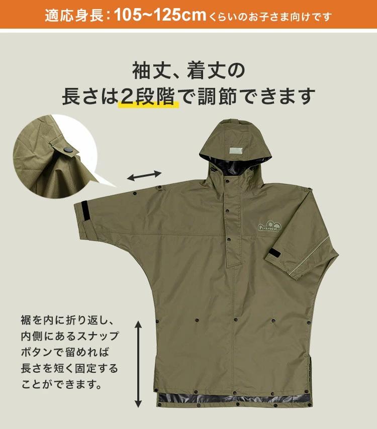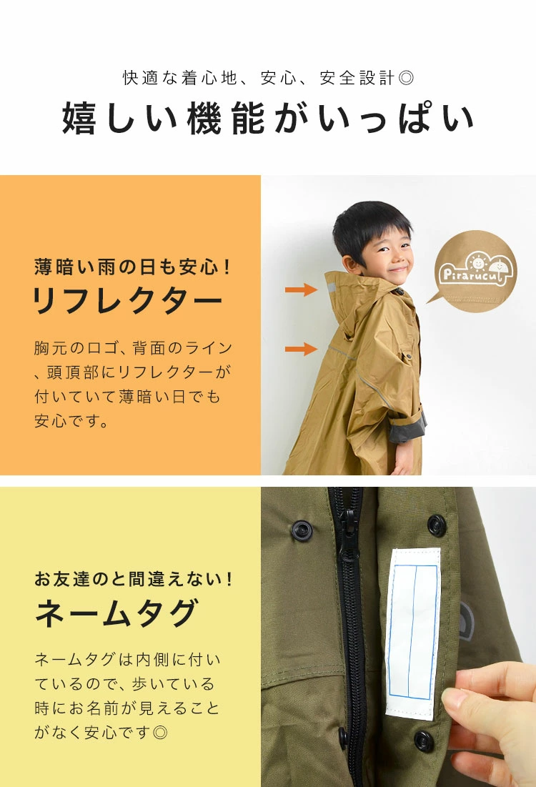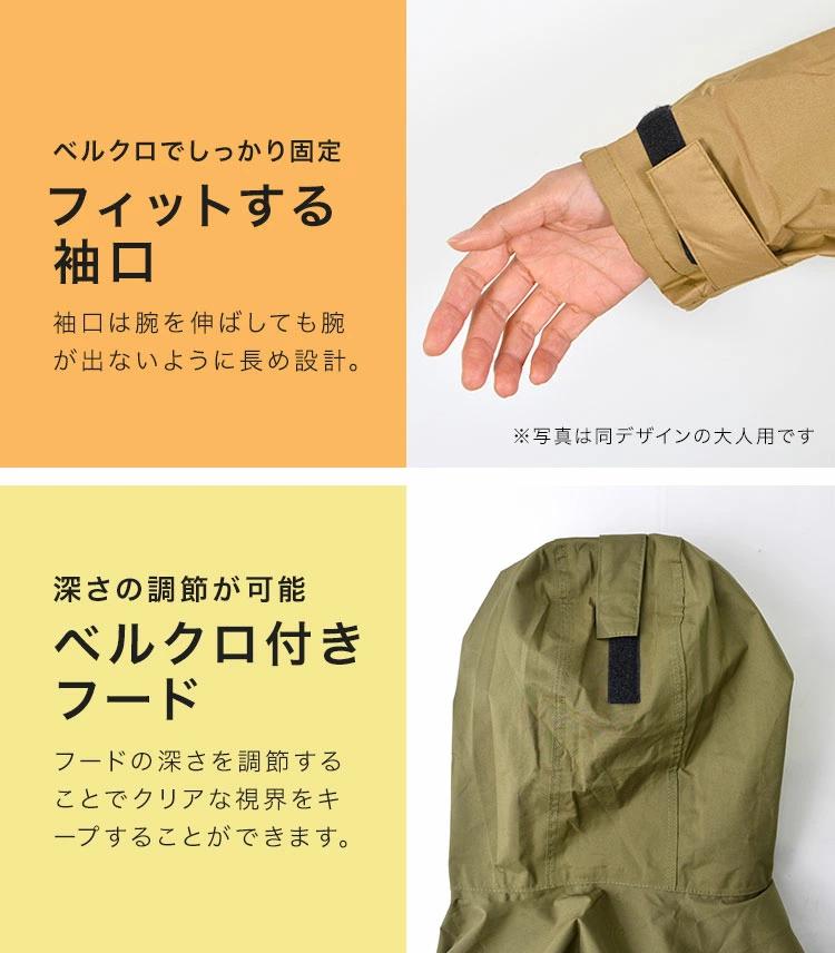 ■仕様◇成長に合わせて着丈、袖丈の調節が可能◇薄手で軽量◇薄暗い日も安心のリフレクター付き◇細かく調節出来るフード◇ネームタグ付き◇リュックごと着用可能◇男女兼用
