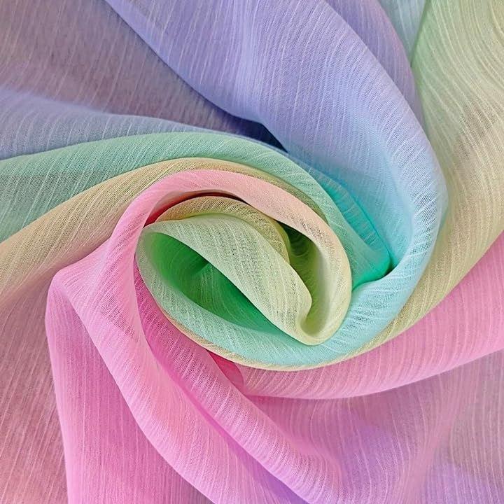 レインボーカラーと優雅な流水紋が見事に調和し、他のシフォンとは異なる魅力を持つ生地です。