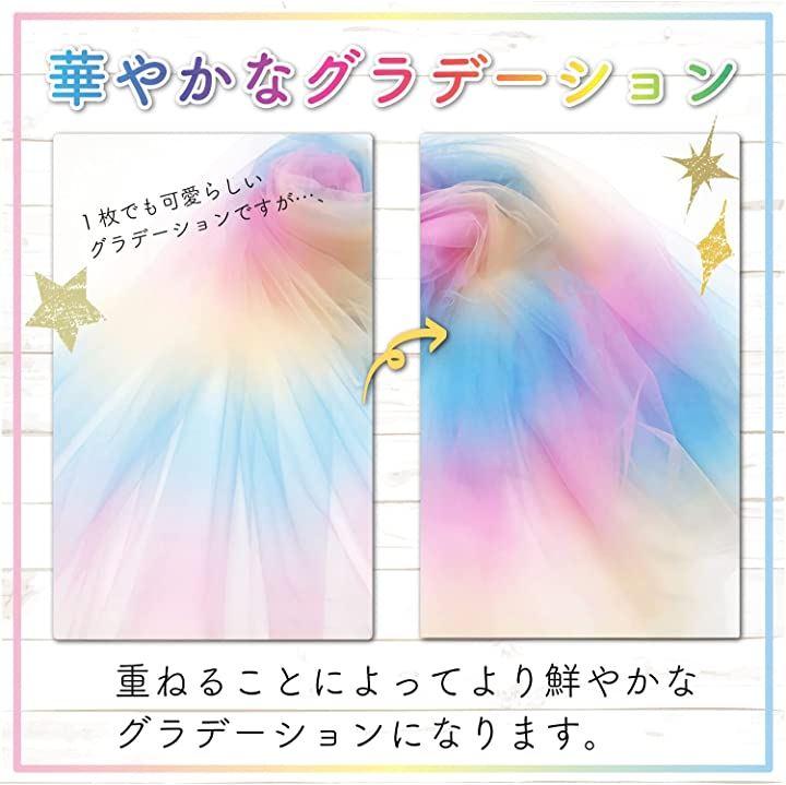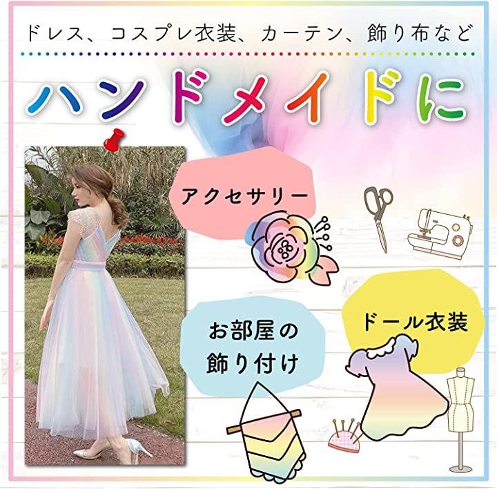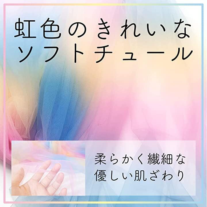 ・虹色のグラデーションが美しい、軽やかでソフトな肌ざわりのチュール生地です。