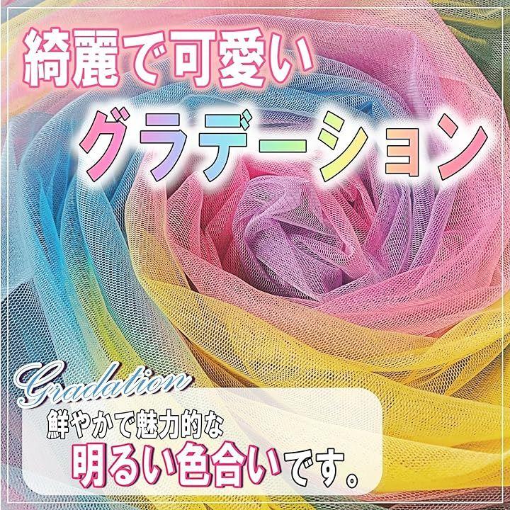 目を引く鮮やかな虹色のグラデーションのチュール生地です。