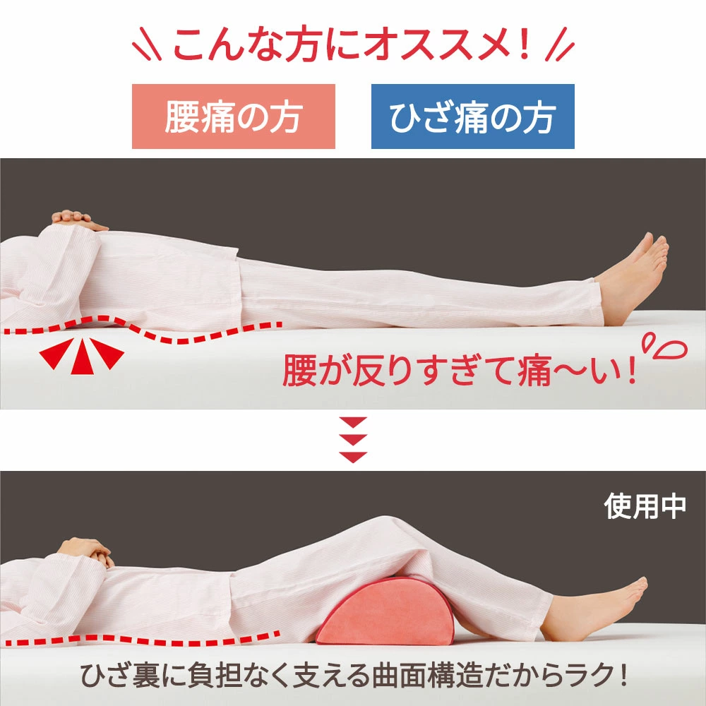 【商品名(JAN)】腰RAKUまくら レッド(1314-rd)腰RAKUまくら ブルー(1314-bl)【商品サイズ(約)】約縦26×横34×高さ12.5cm【材質】カバー:ポリエステル100% 詰め物:(繊維)ポリエステル100%(中材)ウレタンフォーム【製造国】中国製【商品情報】ひざを曲げて寝ると腰がラクなんです!腰痛の方、ひざ痛の方におすすめ就寝時はもちろん、リラックスタイムやお昼寝の休息時に!医学博士 勝野 浩 監修肌触りの良いメッシュ素材