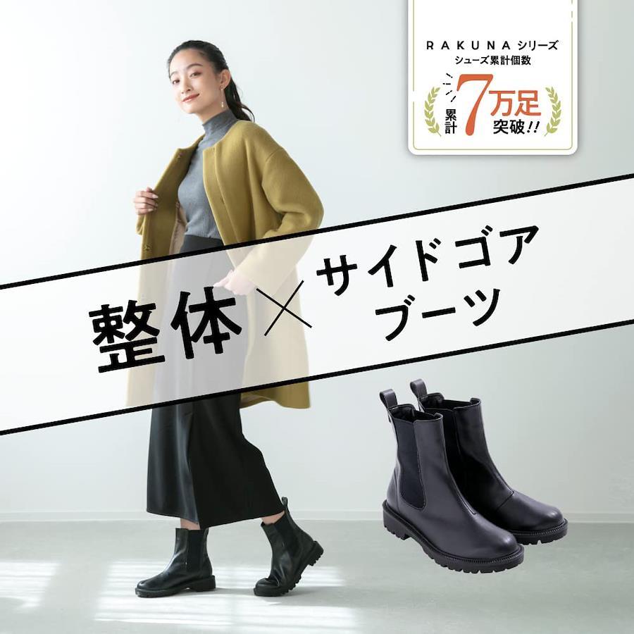 クロージャータイプ プルオン 【サイズ】S(22.0-22.5)、M(23.0-23.5)、L(24.0-24.5)、LL(25.0-25.5)※普段のサイズより大きめのサイズを選ぶのがおすすめです。RAKUNA整体シリーズから靴の町、神戸発、日本製3.5cmコマンドソールタイプのサイドゴアブーツが登場!RAKUNA整体シリーズから靴の町、神戸発、日本製3.5cmコマンドソールタイプのサイドゴアブーツが登場!整体師の指圧マッサージを再現し、かかと安定で美しい歩行姿勢を整える。まるで足裏を施術されている感覚で気持ちいいインソール。 オフィス、ビジネス、プライベートでもシーンを選ばない定番のブラック、定番のデザインです。手作業で1足ずつ丁寧に作られた靴の町神戸発ハイクオリティな「MADE IN JAPAN」のオシャレなサイドゴアブーツです。ご一緒にRAKUNAの整体パンプス、整体ブーツなどもご覧ください。