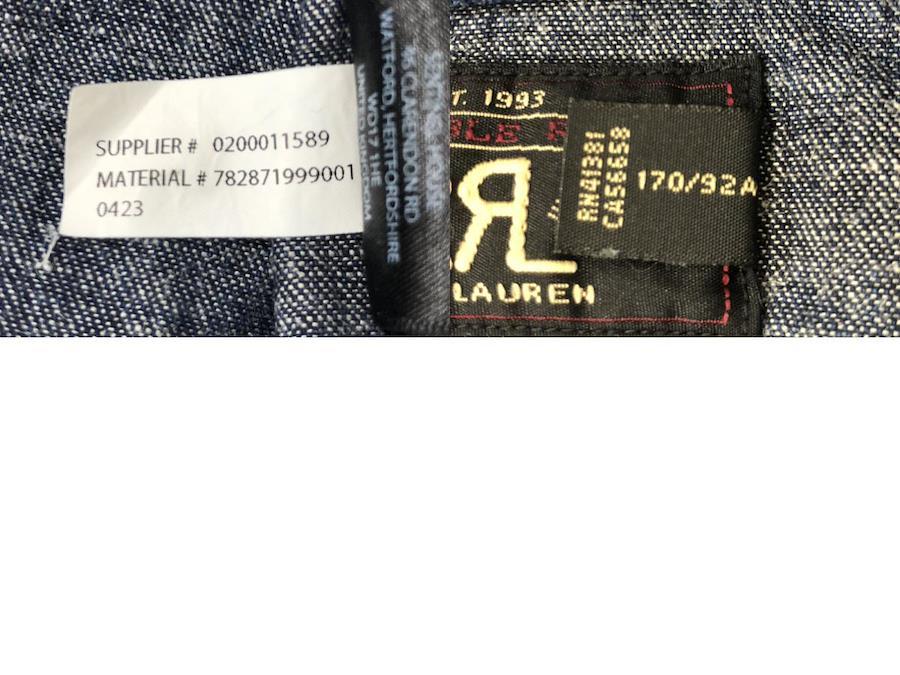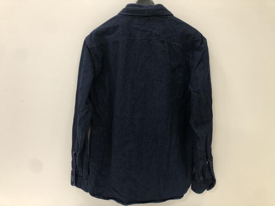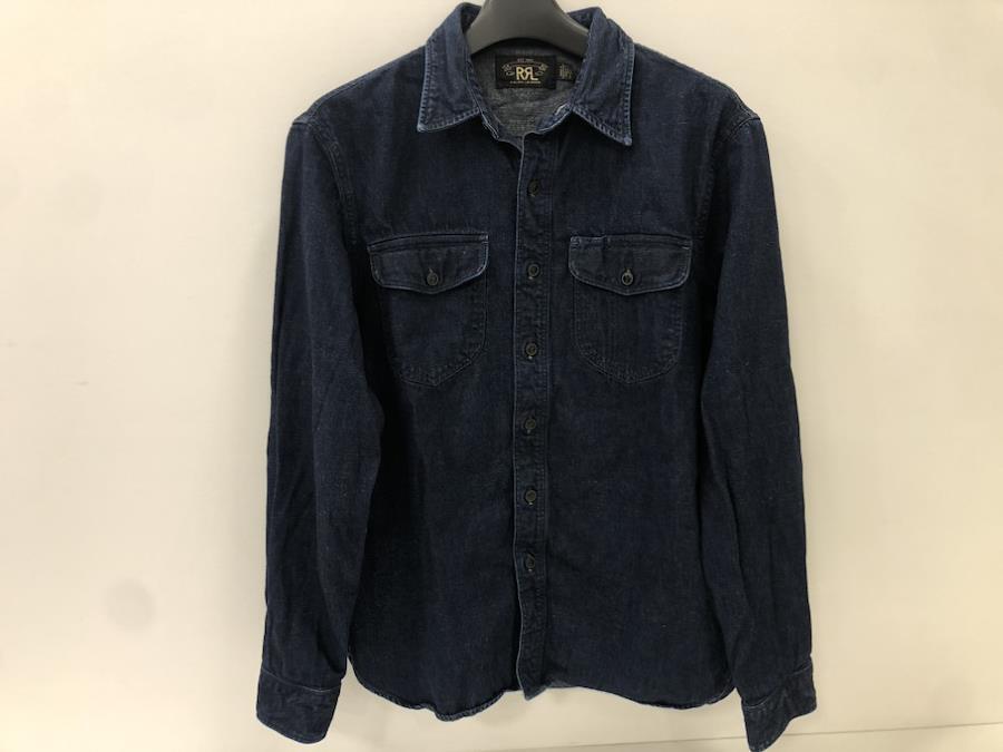 【管理番号】07w50580【サイズ】ケース:約mm肩幅:約44cm着丈:約68cm身幅:約48cm裄丈:約79cm袖丈:約58.5cm夏はTシャツの上からアウターとして、冬はデニムシャツとしてオールシーズンご活用いただけます。ダブルアールエルは入手困難なものも多いシリーズです。デニムとしては柔らかめの素材です。RALPH LAUREN EST.1993 DOUBLE RLSUPPLIER # 0200011589MATERIAL# 782871999001RN 41381CA 56658【付属品】なし■コンディション・状態【状態ランク】C中古品です。使用感はあり、右袖にひっかけ傷穴がございますが、綺麗な濃青のお色は袖口や襟隅に部分的な経年の脱色はあるものの全体的な濃青の美しさを未だ保っております。比較的柔らかめのデニム素材のため、持ち歩きにもかさばりすぎず、半袖のTシャツの上からのご使用でクーラーの冷え対策等にもお役立ていただけます。※詳しくは商品画像をご確認ください。