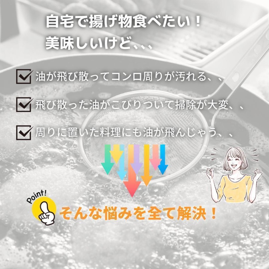 自宅の揚げ物や炒め物で悩みのタネになる油はね・飛び散り汚れをしっかり防ぐ、