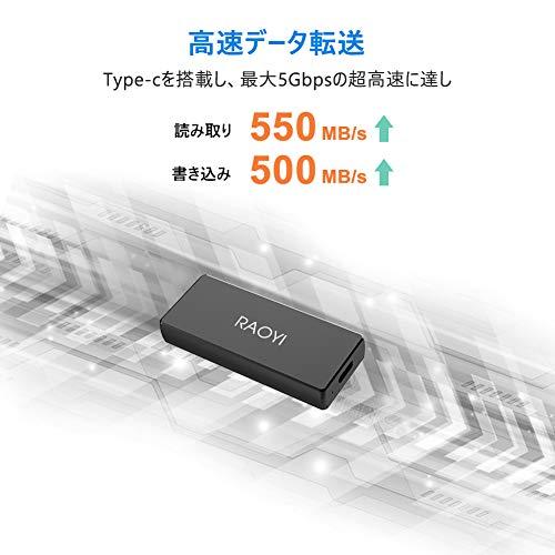 【超ミニ外付SSD】この高性能で大容量のハードドライブは、手のひらより小さく、仕事や娯楽のためにポケットや財布に簡単に収まり、持ち運びも便利です。写真、ビデオ、音楽、ドキュメントなどはいつでもどこでも保存できます。【超高速転送】最大550MB /Sの読み取り速度で、転送速度を大幅に向上させ、数秒でHDムービーなどの大きなファイルを転送し、超高速のエクスペリエンスを実現できます。接続規格:USB 3.1 Gen 2【幅広い互換性】この外部SSDは、Android、iPad OS、Mac OS,、Windowsに対応します。 デスクトップ、ラップトップ、タブレット、MacBook、iPad Pro、Macbook Pro,などType-Cポートを備えた設備で動作できます。X-box、PS4(それ以上を含む)などのゲームドライブとして使用して、より良いゲーム体験を楽しむこともできます。【高品質&優れた性能】頑丈で耐久性抜群のアルミニウム合金を採用した小型・軽量かつハイスペックな外付けSSD、より頑丈で耐久性があります。安定且つ安全なデータ転送機能を備えます。信頼性の高いデータ伝送と低消費電力を実現します。【容量拡張&1年保証】大容量のSSDは、より多くのデータやファイルを保存するのに便利です。ストレージ不足の問題を解決し、操作速度を向上させて、よりスムーズに体験できます。弊社の外付けSSDは1年間品質保証があります。万が一、商品に不具合がある場合、の購入履歴より弊社にご連絡いただければ、至急対応いたします。どうぞ、ご安心にお試しください。