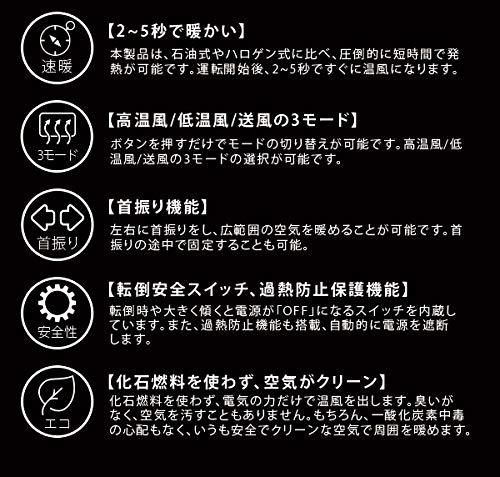 通常1-5営業日で発送:石油式やハロゲン式に比べ、圧倒的に短時間で発熱が可能です化石燃料を使わず、空気がクリーン化石燃料を使わず、電気の力だけで温風を出します臭いがなく、空気を汚すこともありません