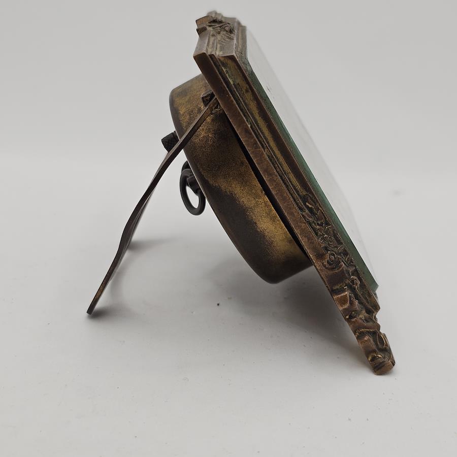 [ 商品詳細 ]■ ブランド名KIENZLE(キンツレ)■ 種類アンティーク 卓上 手巻き式 置時計(目覚まし機能付きの可能性あり)■ サイズ縦:約8.5㎝ / 横:約9.5㎝ / 奥行:約7㎝(スタンド展開時)■ カラー・素材ゴールド/ブロンズトーン(真鍮/ブラス)■ 動作状況現在も稼働中。一度ゼンマイを巻くと、約2日間近く正確に時間を刻みます。■ 付属品なし (本体のみ)■ 状態年代物(骨董品)のため、金属の変色、経年によるサビや文字盤の染みなどがございます。アンティークならではの「味」としてお楽しみください。時計としての機能は良好です。