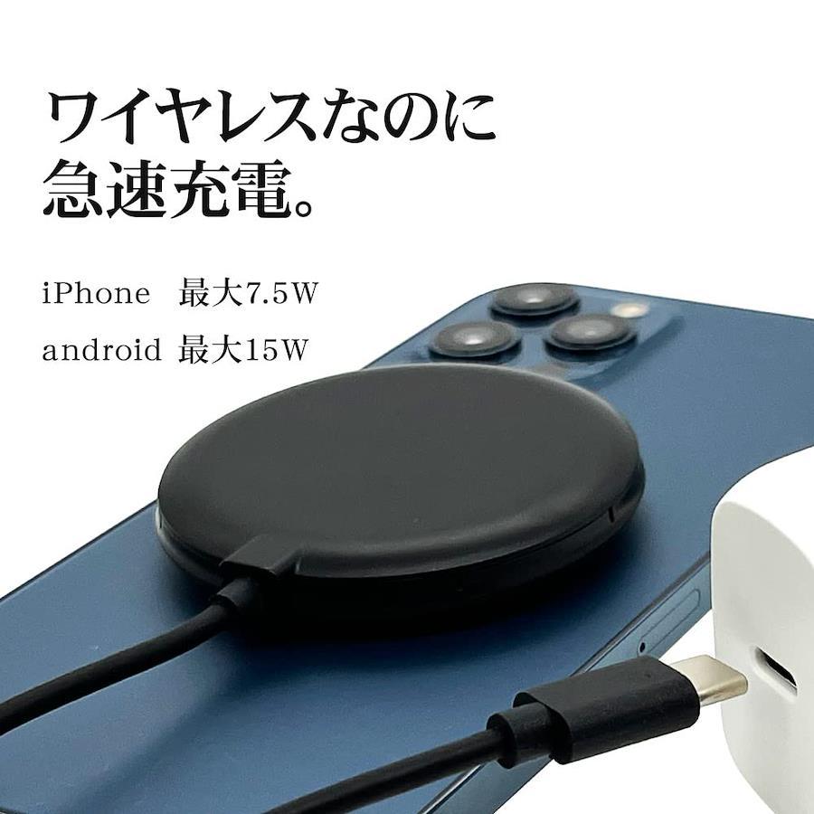 3営業日以内に発送≪新品未開封品≫:【ワイヤレス充電しながら端末操作が可能】吸盤を機器背面に貼り付けることで充電器と機器が離れて充電が停止することを防ぎ、機器を手に持って操作することもできます。【見やすいLEDランプ】通電状況がわかるインフォメーションLEDランプ付き【急速充電に対応】高出力充電に対応するスマートフォンは最大15Wの急速充電、iPhoneは最大7.5Wで充電できます。 (7.5W及び15W出力を利用する場合は「Quick Charge」もしくは「Power Delivery」対応のACアダプタをご使用ください。)【安心の放熱設計】外周に空気穴を設けた放熱設計で、Qi充電器本体の温度を低減します。【製品仕様】 ■重さ:42g ■ケーブル長:約1.0m ■ワイヤレス規格:Qi(チー)ver.1.2.4 ■入力:DC 5V-2A,DC 9V-2A,DC12V-2A ■出力:15W(MAX) ■本体サイズ:直径約62.7mm×厚み約12.9mm ■仕様温度範囲:-10°C~40°C