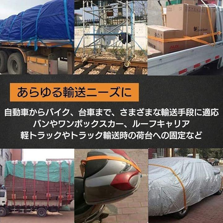 バンやワンボックスカー、ルーフキャリア、軽トラックやトラック輸送時の荷台への固定など、多岐にわたる用途に最適で、荷崩れ防止にも役立ちます。