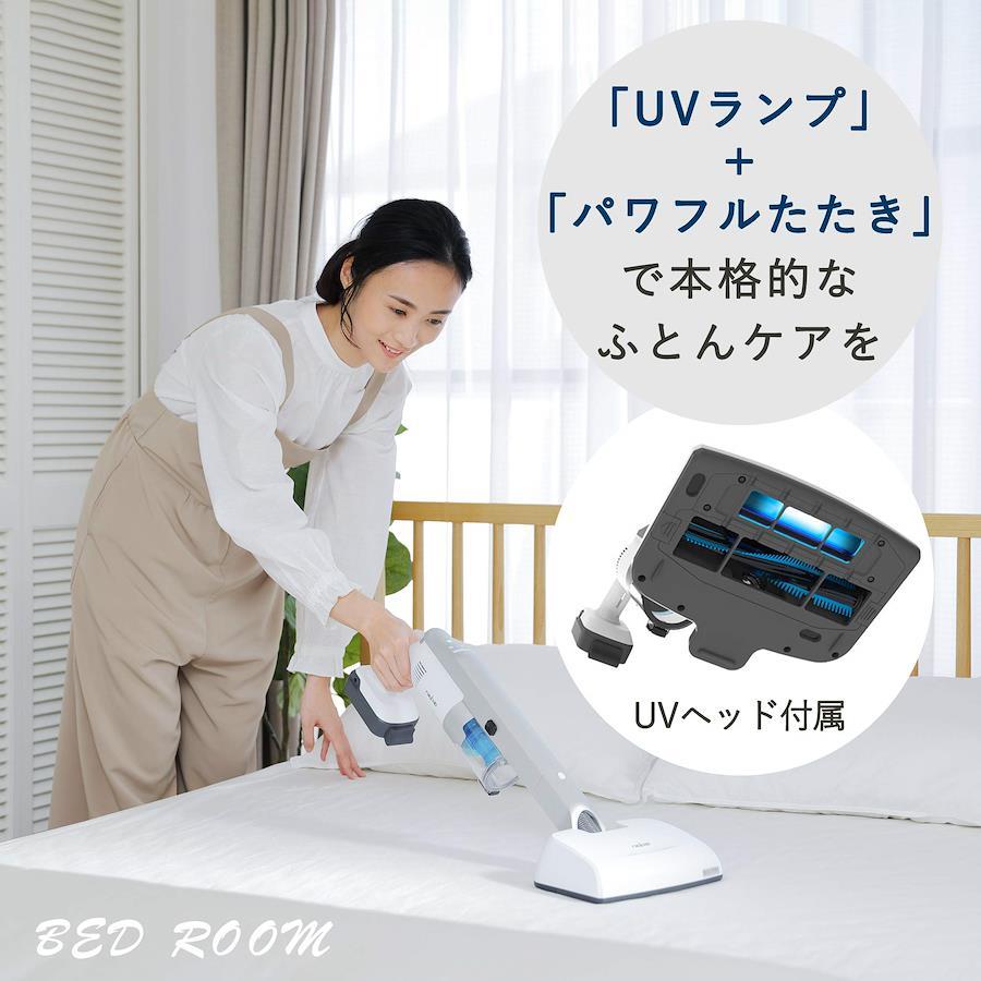 3営業日以内に発送≪新品未開封品≫:軽さと快適さをカタチにした コードレス スティッククリーナー UVヘッド付き/本体サイズ:幅20.7×奥行21.1×高さ104cm(延長パイプ+パワーヘッド装着時)、本体重量:1.6kg/運転時間:[弱]約30分[標準]約20分[ターボ]約15分(本体基準)/UVヘッド:[UV除菌]99.9%※(一財)日本食品分析センター調べ 第19010284号[ウイルス除去]96.0%※(一財)北里環境科学センター調べ 北環発2018_0053号[ハウスダスト除去効率]3分90%以上※ITEA(株)東京環境アレルギー研究所調べ T1902287[パワフルたたき]毎分6,200回(フィンパンチブラシ)[ブラシ]フィンパンチブラシ/付属品:UVヘッド、ハンディノズル、すき間ノズル、充電アダプター