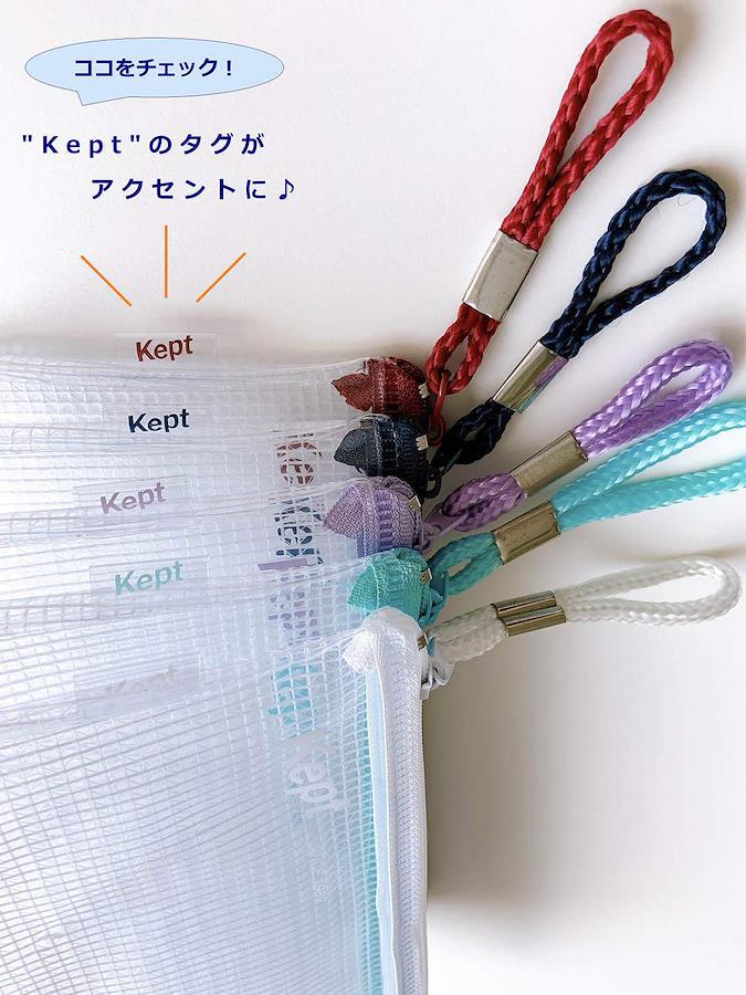 しっかりしたファスナー口と出し入れのしやすい長めの引手がトレードマークで、カラフルな5色をラインナップ