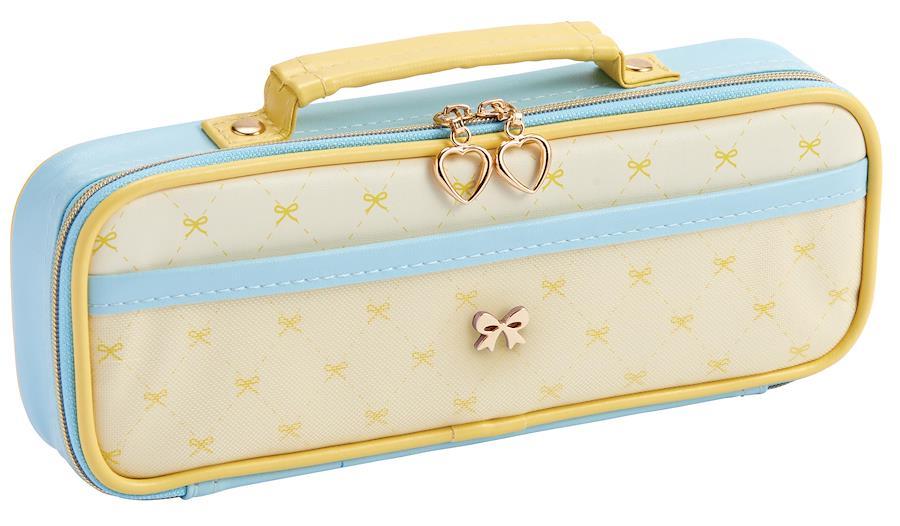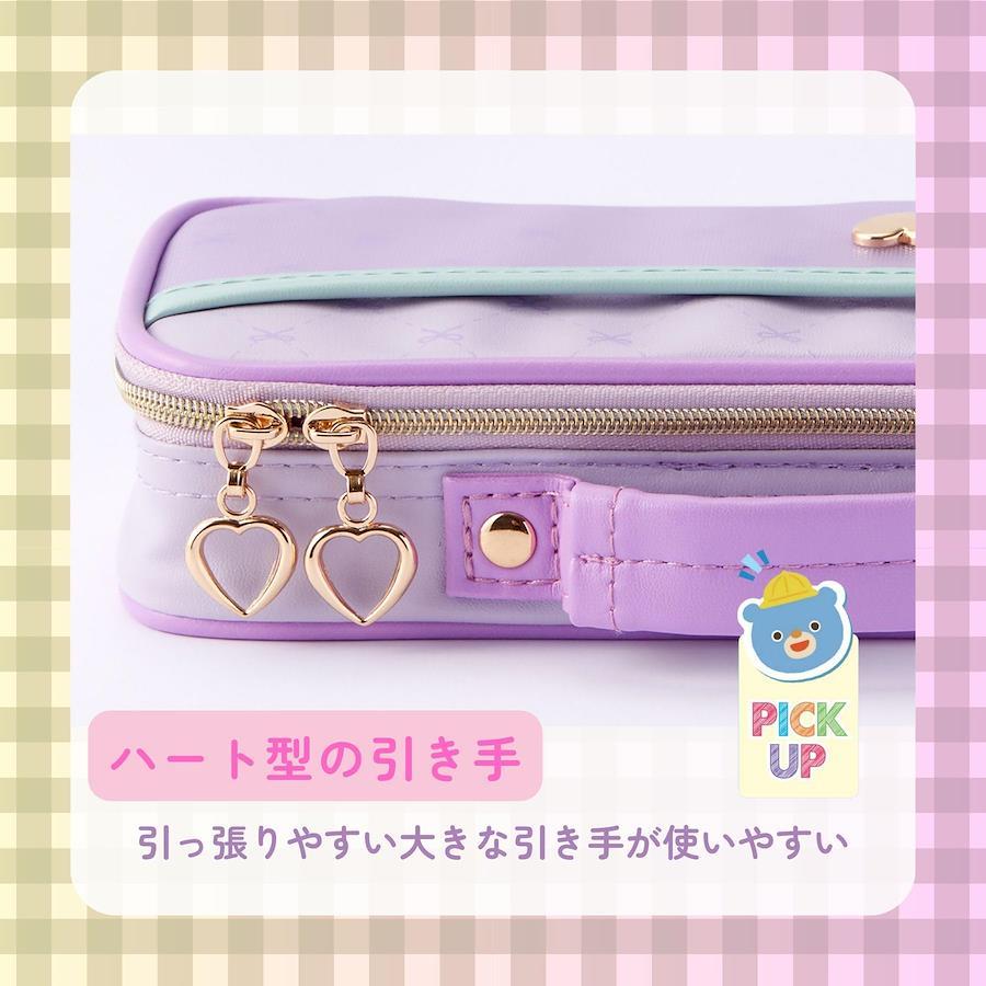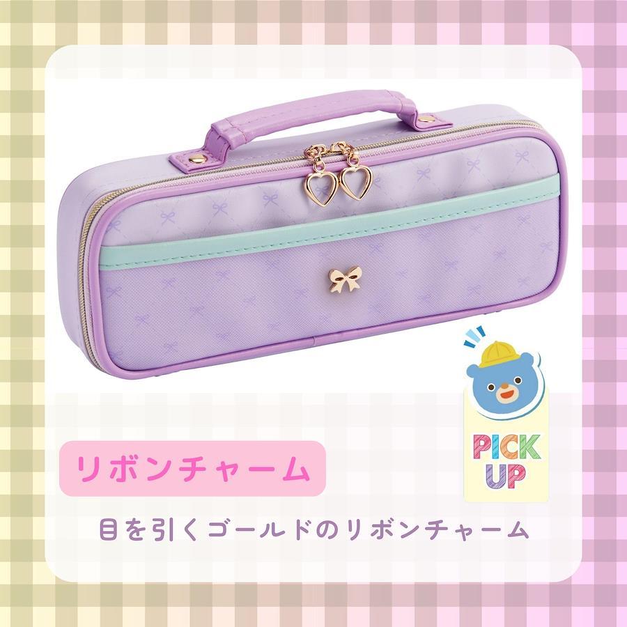 メッシュポケットとリボン柄がとっても可愛い、機能性抜群な筆箱。