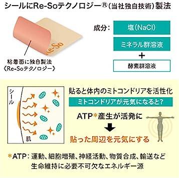 運動パフォーマンスの応援に。リ・ソビーム シールタイプ ワイド 160枚入り。【枚数】36枚入 【サイズ】46mm×28.5mm 【成分】Re-Soテクノロジーを施した塩(NaCl)、ミネラル群溶液+酵素群溶液(ミトコンドリア賦活試験(科学的根拠)代謝活性実証済)【返品・交換について】未開封の場合に限り、商品お届け日より8日以内受付。お客様のご都合による返品、お客様のもとで汚損・変質・破損が生じたもの等は、返品交換をお受けできませんのでご了承下さい。