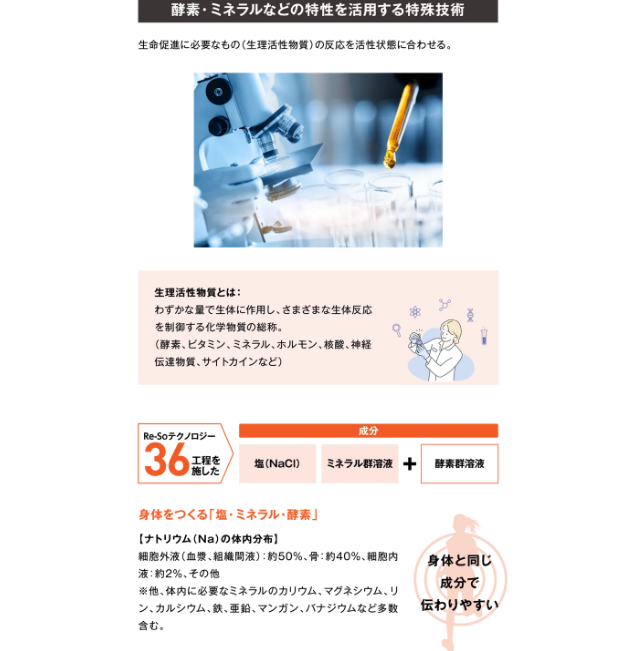 Re-Soテクノロジー ⇒ 36工程を施した成分