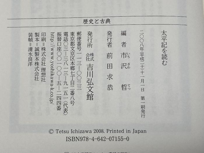 Reading the Taiheiki (History and Classics) Yoshikawa Kobunkan Ichizawa Satoshi