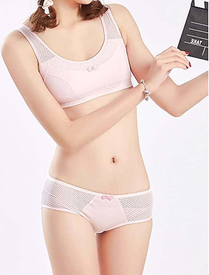 蒸れにくいメッシュ仕様のスポーツブラとショーツのセット。