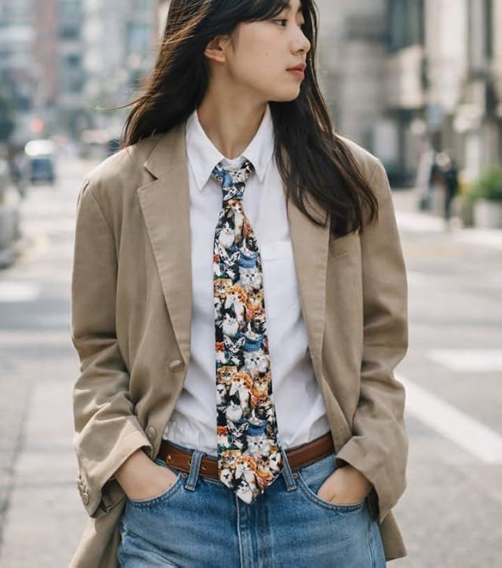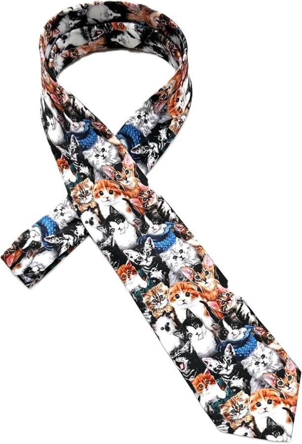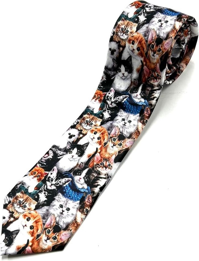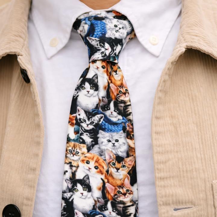 Realistic Cat Kitten Assortment Necktie - Cute Silk-Touch Polyester Necktie with Cat Print - 8cm Wide - All-Over Pattern - Men's Gift - tie2602-06