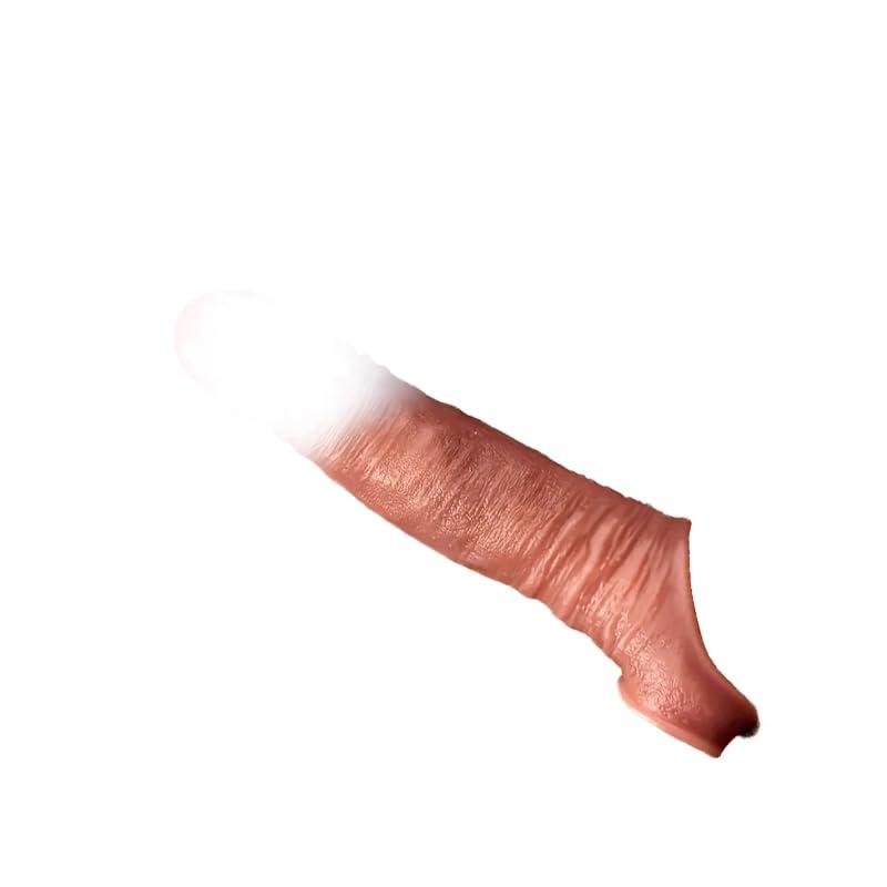 肌色のリアルな質感を再現したシリコン製ペニスサック。睾丸固定リング付きで安定感があり、標準版と振動機能付きの2種類から選択可能。柔らかく丈夫な素材を使用し、防水仕様でお手入れも簡単。快適なフィット感と使いやすさを兼ね備えた男性用アダルトグッズです。