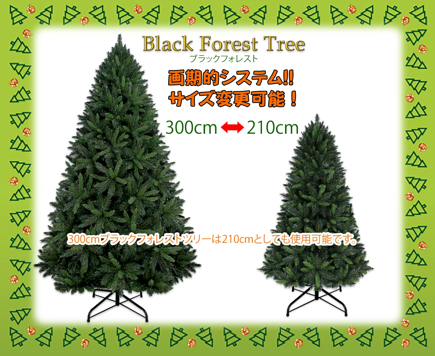 300cmブラックフォレストツリーハイクオリティーな大型ツリーに加え、形はそのままで高さを変更できる画期的なツリー!ツリーのフォルムと枝の密度にこだわった大型ツリーです。大型ツリーはどうしてもコストを重視してしまうあまり単色のフィルムだったり、枝数を少なくしてしまう傾向にあります。しかし、このブラックフォレストツリーは数色のフィルムと2種類の形が違う枝を組み合わせ、また、それをたっぷり使っています。全体として濃い目の色使いで、より重厚感、高級感を演出しています。まさに、大型ツリーの最高峰となるクリスマスツリーです。画期的システム!ブラックフォレストツリーは2024年度モデルチェンジにより、画期的なツリーに変貌しました!360cmタイプと300cmタイプのみですが、ツリーのフォルム(形)を変えずに、高さを変えることができるツリーです。このツリーは高さ300cmですが、210cmに低くすることができます。たとえば、天井の高いお部屋に飾っていたものを形を変えずに低い天井の場所でも設置することが可能となりました。