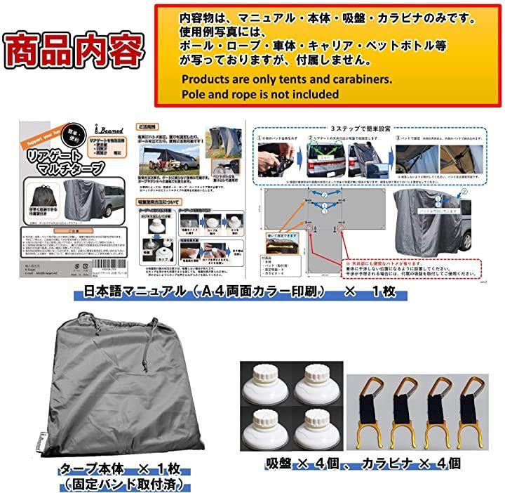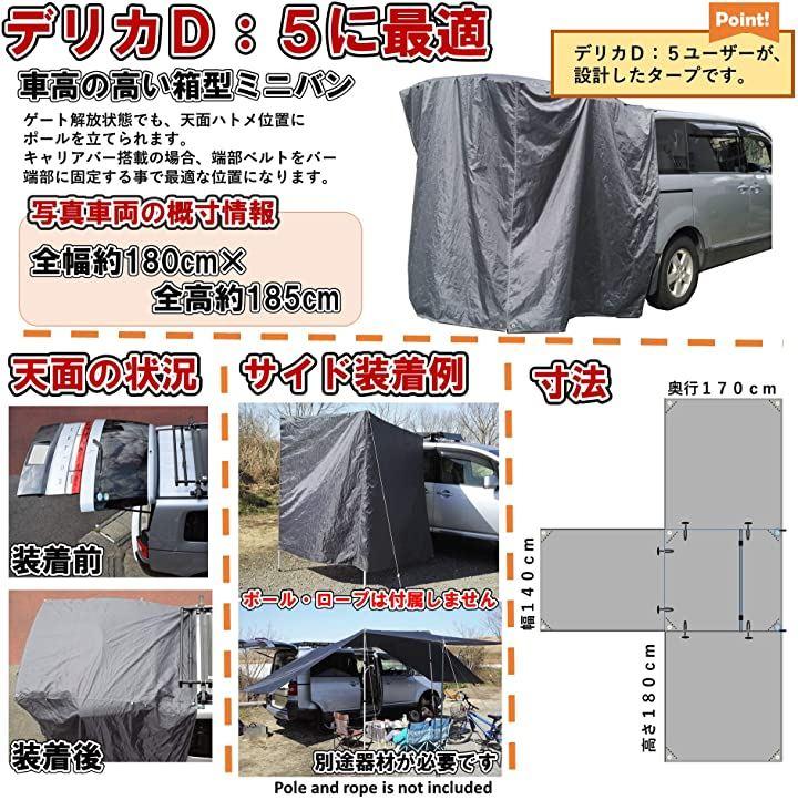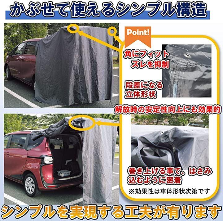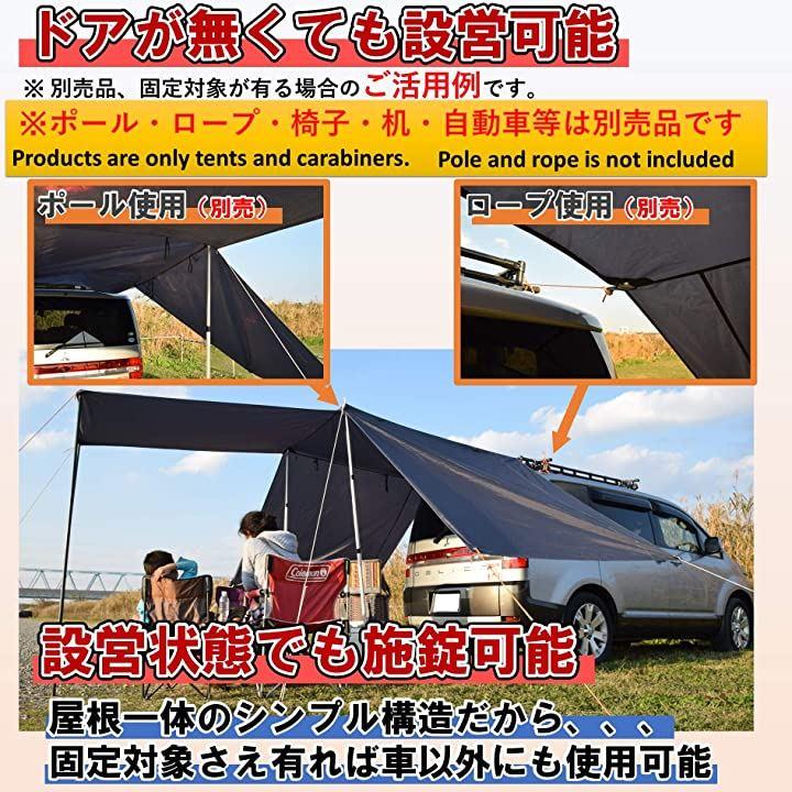 リアドアが跳ね上げ式の自動車なら、タープ本体だけでお使いいただけます。