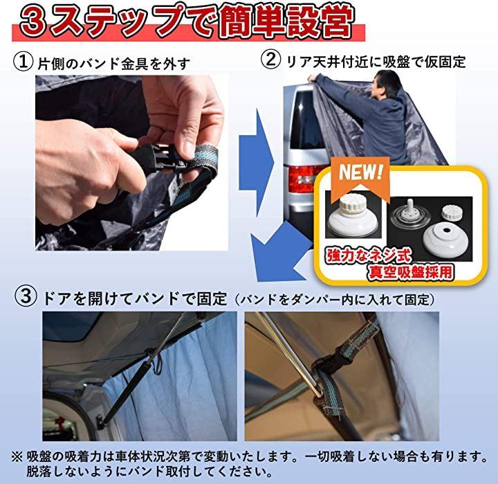 工夫次第では、自動車のリアゲートを使用しなくても設営が可能です。