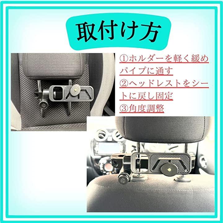 ・v「取り付け簡単」ヘッドレスト車載用ホルダーはプラスドライバー1つで、取付も簡単、しっかり固定できます。