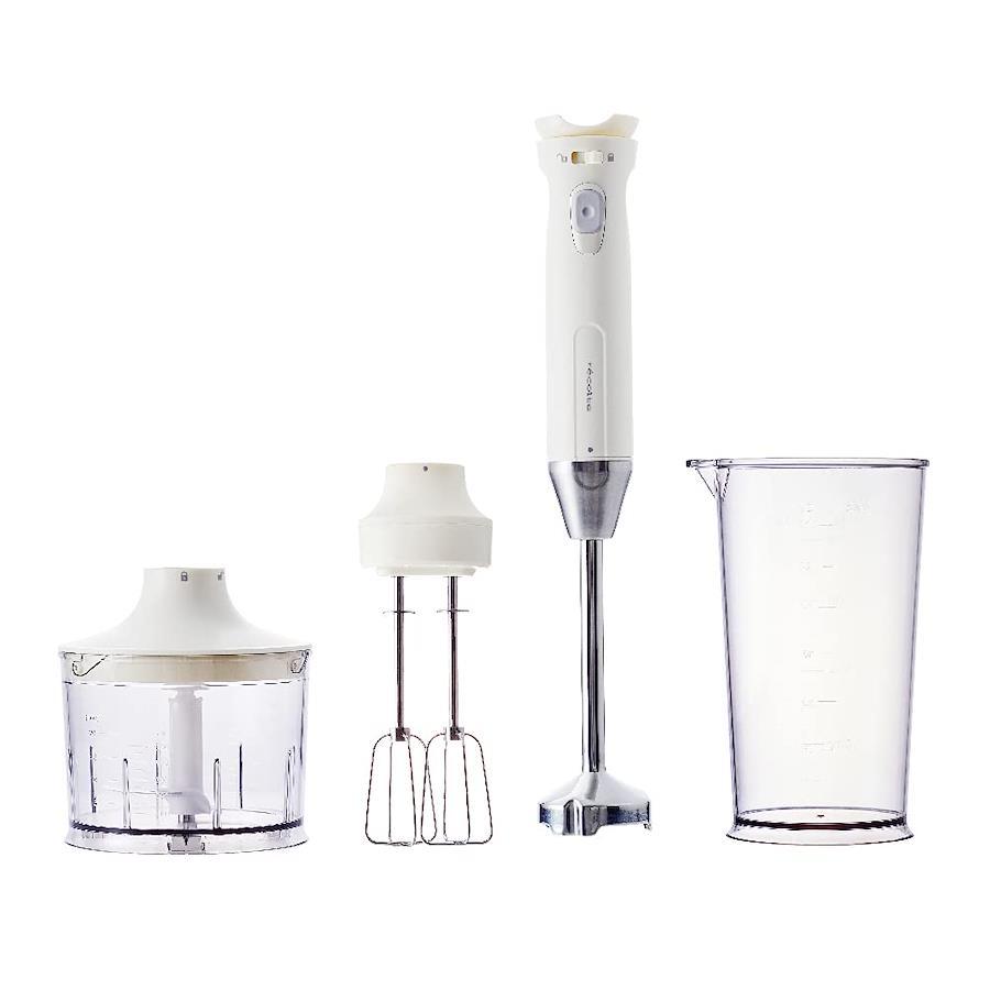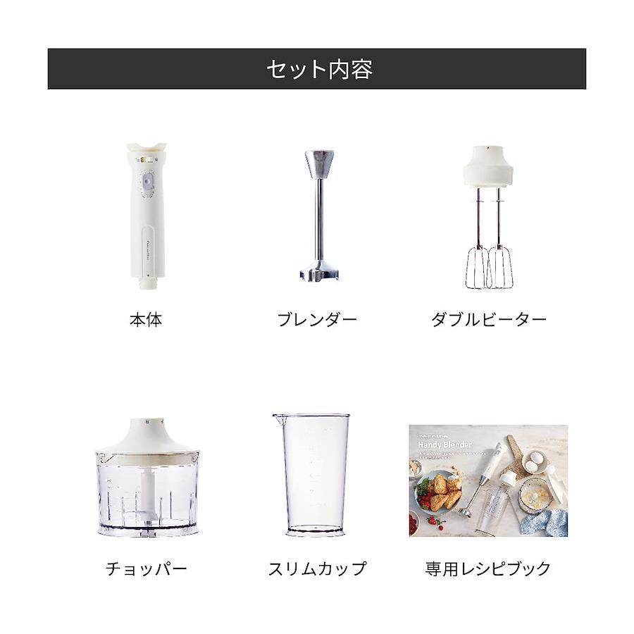 3営業日以内に発送≪新品未開封品≫:?[1台5役!アタッチメントの付け替えで使い方広がる!]付属の[ブレンダー]、[ダブルビーター]、[チョッパー]のアタッチメントを交換することで、“潰す”、“混ぜる”、“泡立てる”、“刻む”、“砕く”の1台5役が叶います。