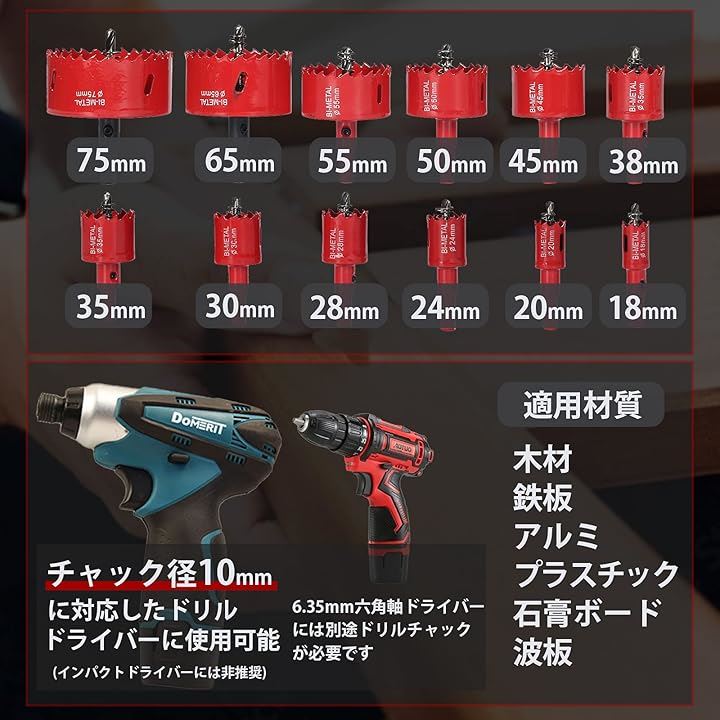 「現役大工が推薦。」バイメタルホールソー 直径18~75mm 増量 12本セット