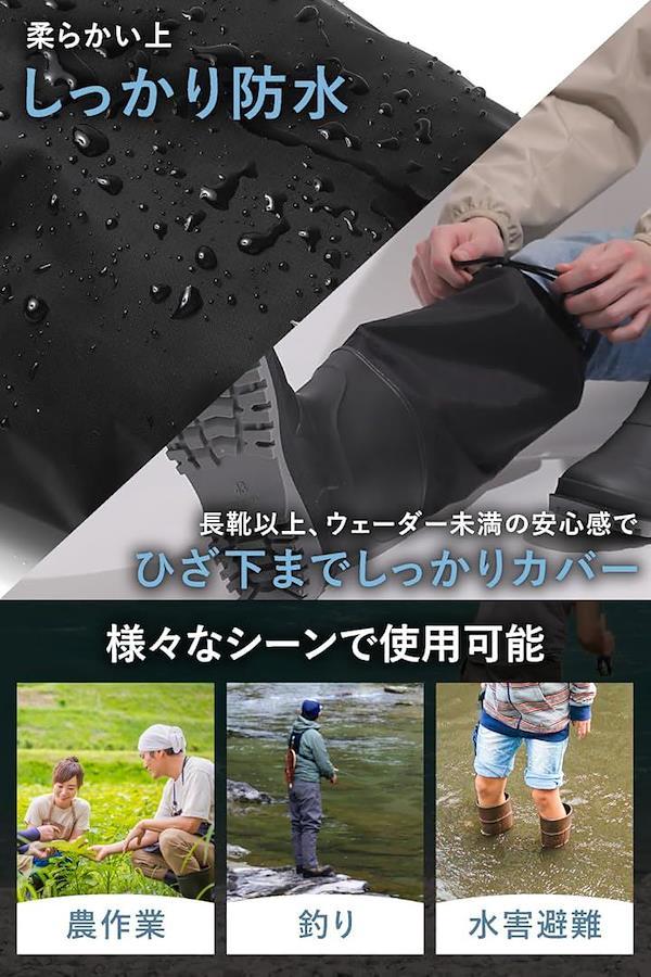 PVC素材で防水性が高く、浅瀬の釣りや農作業、水害時の避難用など多用途で使えます。