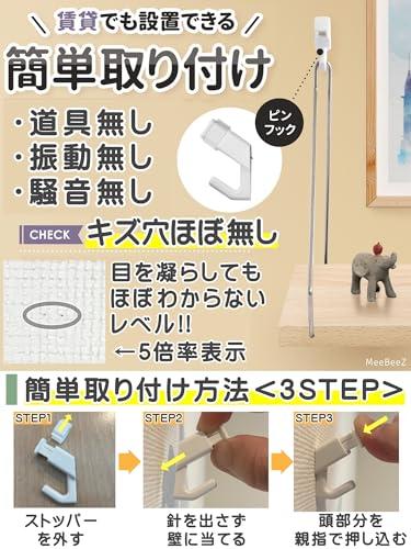 【類似品にご注意ください!】当店の画像を使って出品している類似品につきまして、ピンフックの針は当店よりも太くキズ穴も大きいため、ご注意いただくようお願い申し上げます。 【シンプルで機能的なウォールシェルフ】シンプルなデザインで、どんなお部屋にもマッチするウォールシェルフ。細めのフレームがディスプレイしたアイテムの魅力をより一層引き立てます。カラーはナチュラル、アッシュブラウン、ホワイト、ブラック、ブラウンの5種類。お好みのテイストをお選びください。 ※1枚目のメイン画像は30㎝幅になります。 【インテリアのプロも大絶賛】《インテリアコーディネーター齋藤理佳さんのコメントより抜粋》木材の耐久性や防水性にまでこだわったシンプルなウォールシェルフです。ピンフックを使えば道具不要で、誰でも簡単に取り付け可能!しかも、ほとんど壁を傷つけません! 賃貸でも問題なく取り付けできますよ。 【製品の特長】《事前準備の必要なし》ピンフックを使用する場合は、ドライバーなどの工具もいりません。《壁はほぼ無傷》棚を設置した際のキズはほとんど残りません、ほぼ無傷です。賃貸物件にも◎《フレームの左右差》棚を丁度真正面から見たときにバランス良く、美しく見えます。 【高品質の棚板】《3つの耐性》耐久性・耐水性・耐傷性に優れた、長くご愛用頂けるシェルフです。《自然な木目》ホワイト、ナチュラル、ブラック、アッシュブラウン、ブラウン全色自然な木目がお部屋に彩りをプラス。、ディスプレイを引き立てます! 【優れた耐荷重】当店オリジナルの超極細ピンフックで取り付けた場合、2リットルのペットボトル2本のせてもびくともしません!耐荷重にも優れています! 【商品仕様】○サイズ:幅30cm or 35cm or 40cm or 50cm×奥行15cm×高さ15cm ○カラー:ナチュラル/ホワイト/アッシュブラウン/ブラック ○セット内容:ウォールシェルフ本体×1、取付け用ネジ×2、石膏ボード用アンカー×2、ピンフック×2、日本語取扱説明書 ○素材:木材 ステンレス ○耐荷重:3-10kg ○ブランド:MeeBeeZ