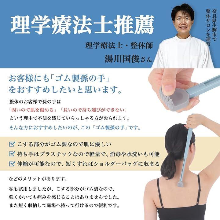 「肌に優しいゴム製まごの手」理学療法士推薦。肌に優しいゴム製のまごのて。