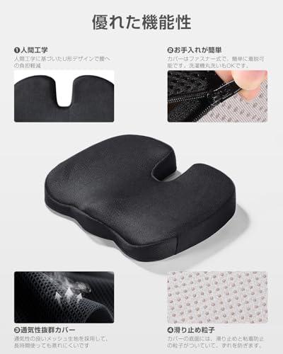 1. 3D molded shape to reduce pressure on the sit bones and tailbone that are prone to bedsores; 2. Thoughtful hip shape and anchor shape to allow even people to sit on easily, 3. Hypochlorous Acid, etc. 100% waterproof inner cover that can be wiped clean with chemical 7. U-shaped and spiked shape that is easy to match with a variety of conventional and modern wheelchairs 8. Contoured type with high body pressure dispersion and sitting retention and a highly versatile flat type for a firm seat Memory Foam Chair Cushion: Designed by a medical doctor in the United States based on years of experience. Gentle care for your tailbone and provides both comfort and stability. The ergonomic three-dimensional design and memory foam relieves the burden on your lower back and pelvis, and allows you to achieve a natural forward posture just by sitting, allowing you to stretch your back muscles naturally and guide you to correct posture Ergonomic 3D Design: The ergonomically designed memory foam cushion adheres to the natural lines of the lower back and firmly supports the tailbone. Reduces pressure on the lower back caused by prolonged sitting, and relieves symptoms of chronic lower back pain, lumpy back and sciatica. Flexible material distributes weight evenly, increasing comfort while minimizing back strain during long hours of work or driving [Memory Foam Urethane Material & Body Pressure Dispersion Reduces Fatigue] Made with high quality materials that will not deform even when sitting for long periods of time. By concentrating your body pressure on one point, it can concentrate the force on parts of the body and cause back pain or pelvic distortion. By evenly distributing your body pressure, you can expect to reduce the burden on your body. The large size is perfect for office chairs and car seats (Excellent Breathability & Machine Washable) The warp construction has many air channels and is highly breathable, so the part that touches your buttocks will not get stuffy and comfortable. With a zipper, the cover can be easily removed and washed, so it can be washed in a washing machine at home. You can always keep it clean and comfortable. Note: The included cover is fully machine washable, but the main unit is not washable. To clean, wipe it with a dry cloth. In addition, please put it in a laundry net (Useful in Various Places) The 3D cushion has an ergonomic design and memory foam that relieves the burden on your lower back and pelvis, allowing you to achieve a beautiful posture just by sitting. The wide seat size allows you to comfortably fit your body, and the depth allows you to sit deep and increase stability. This is a versatile item that can be used as a desk work, driving a car, or as a floor cushion. Whether you are looking for a cushion for an office chair or just want a cushion for your office chair, or you want a cushion for your home, we've created a simple yet functional cushion to accommodate all of your needs. The cushion cover is simple black for any occasion, we designed it to be versatile whether you are at home or in the office Recommended as a gift and size: Height 16.9 x Width 18.5 x Thickness 2.4 - 4.3 inches (43 x 47 x 6 - 11 cm); Can be used in various locations such as Makes a great gift for Mother's Day, Father's Day, birthday present, Christmas, Respect for the Aged Day, etc (#lf)(#lf)(#lf)商品購入前に、ストア紹介ページをご確認ください。