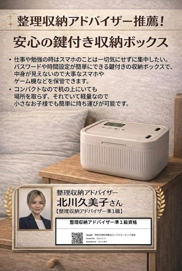 [整理収納のプロ推奨] パスワードや時間設定が簡単にできる鍵付きの収納ボックスで、中身が見えないタイプ。