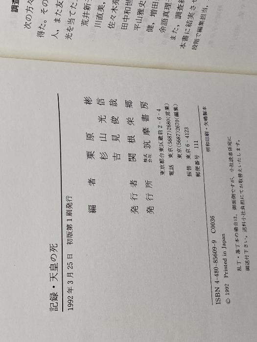 商品名:記録・天皇の死 筑摩書房 栗原 彬