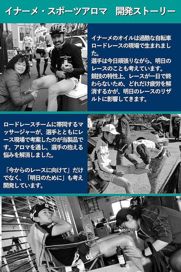 マッサージャーとして、プロ・アマを問わず多くのレース経験を重ねてきたkakoが選手の意見を反映し、生まれた「イナーメ・スポーツアロマ」。