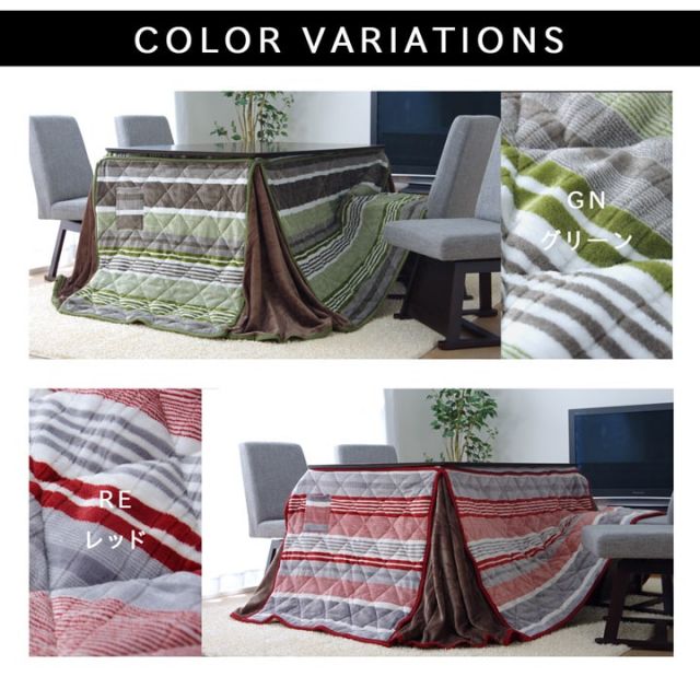 ジャガード織の凹凸感が特徴的な素材感があるこたつ布団です。お部屋の雰囲気気を崩さない淡い色目とカジュアルでお部屋に合いやすいストライプ柄にしました。ダイニング用のこたつ台にご使用いただけます。薄手なので折りたたんでもかさばらず、コンパクトに収納できます。部分暖房のコタツは電気代もおトクです。