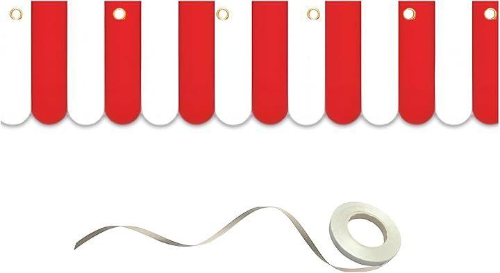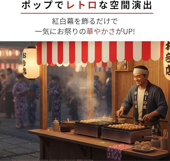 お祭り、縁日、イベント会場、周年記念など、特別な日の雰囲気を盛り上げる紅白フリル幕です。