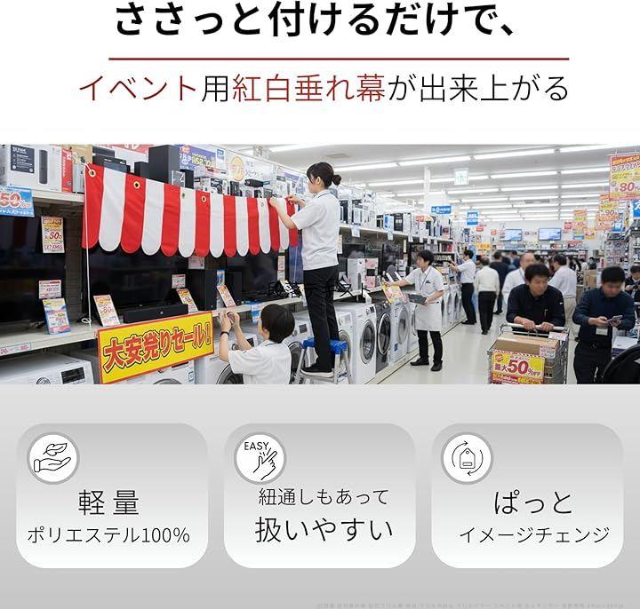 「店舗を華やかに彩る装飾」 集客力を高めるアイキャッチとして最適な紅白のストライプ柄。