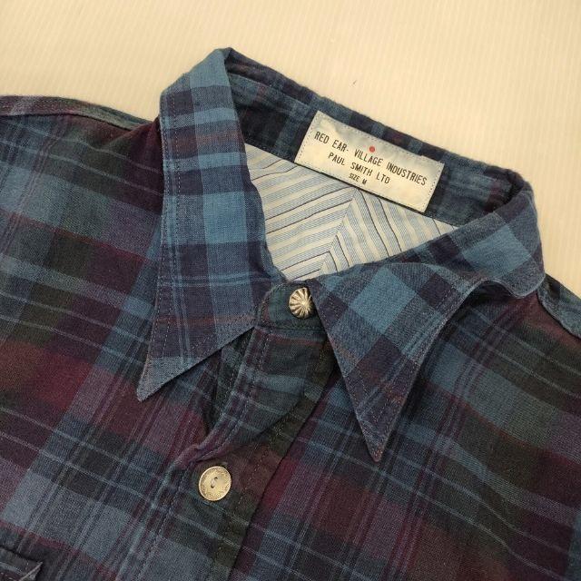 | アイテム | 長袖シャツ インディゴ染め チェック コンチョボタン |