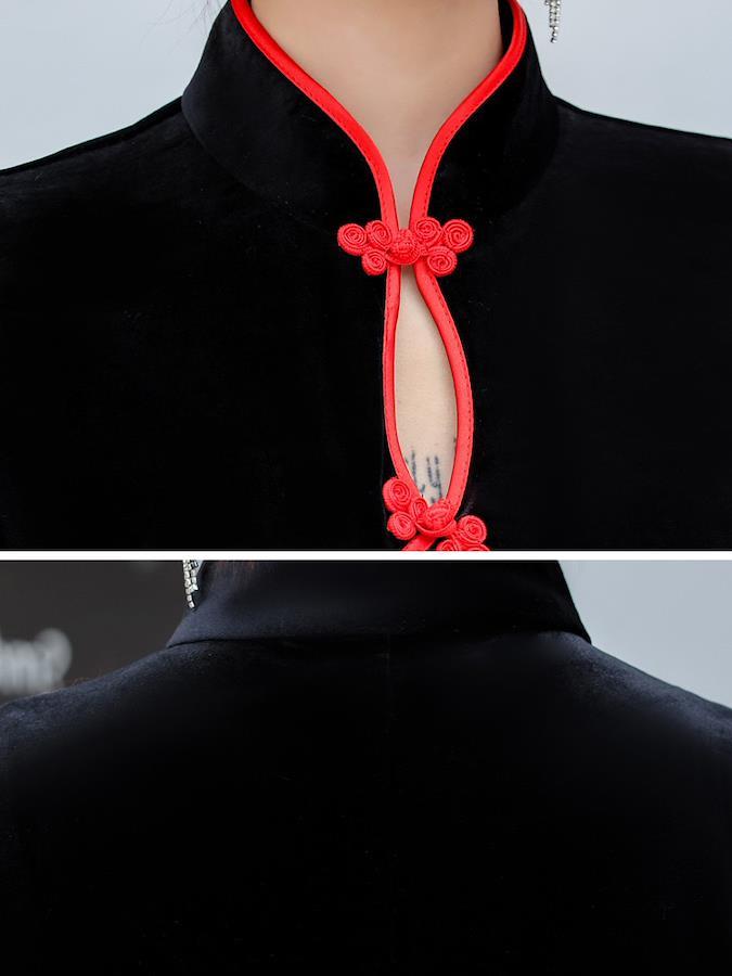 ・ストレッチあり・胸パッドなし・透けません・首のみチャイナボタン開閉可・上から被って着用するタイプ・ブラック色・柄の出方は商品毎に異なります。・素材:ベロア