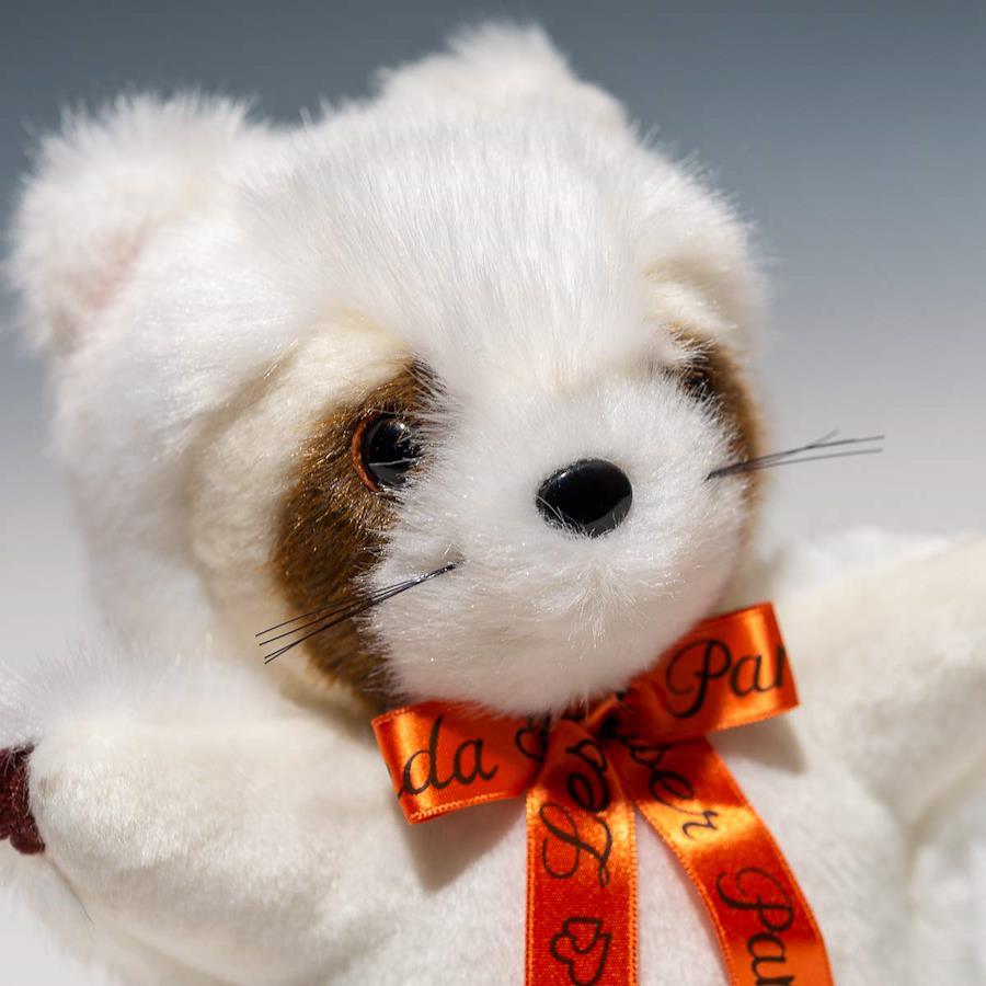 3営業日以内に発送≪新品未開封品≫ほんわかした雰囲気が漂う、優しい表情をしたレッサーパンダのぬいぐるみです。「Lesser Panda」の文字が書かれているオレンジのリボンが襟元に付いていて、とても可愛らしいですよね!縞模様の大きな尻尾の先端部分に付いた小さな鈴も、ワンポイントアクセントになっています。大切な方へのプレゼントにも最適です!皆さん、是非可愛がってあげてくださいね。サイズ:幅17×奥行き26(尻尾含む)×高さ20cm素材:アクリルボア備考:製造メーカーによるハンドメイド商品となり、素材の表情や仕上がり、サイズ等に個体差がある場合がございます。