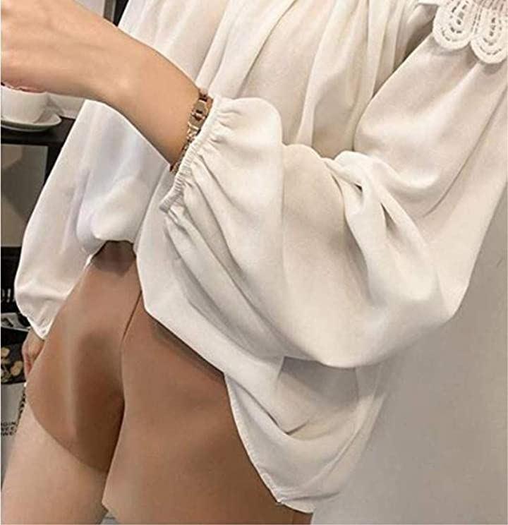 ・お花レースとふんわりとしたバルーン袖は女性らしさの引き立つデザインに仕上げました。