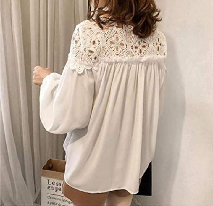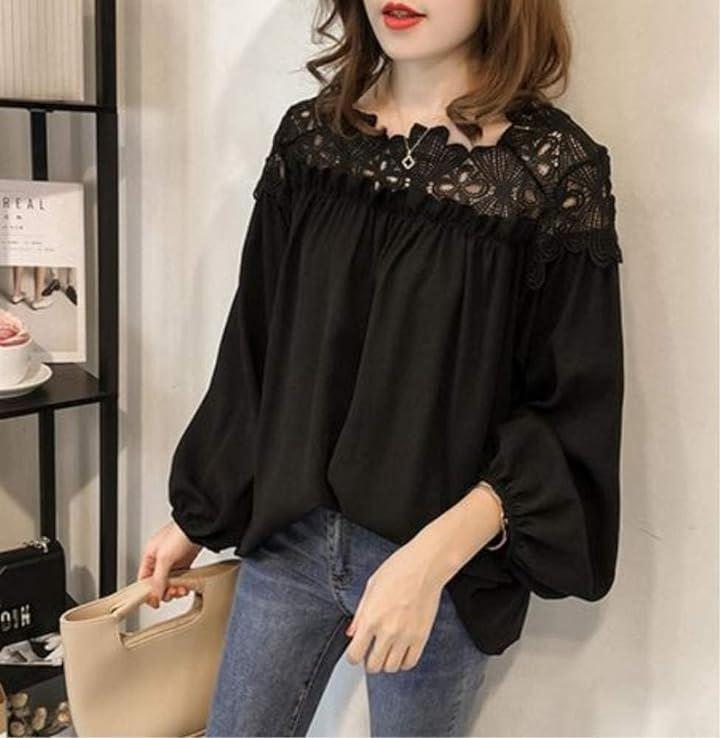 Red Ray Blouse Lace Chiffon Long Sleeve Top Cut and Sewn Women's