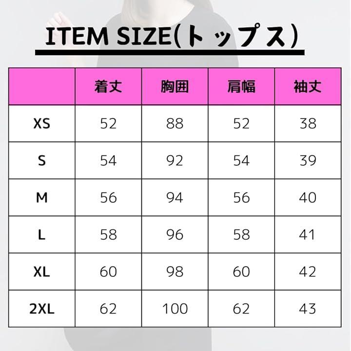 「XS」 トップス:着丈52cm、胸囲88cm、肩幅52cm、袖丈38cm ボトムス:総丈86cm、ヒップ84cm 「S」 トップス:着丈54cm、胸囲92cm、肩幅54cm、袖丈39cm ボトムス:総丈88cm、ヒップ88cm 「M」 トップス:着丈56cm、胸囲94cm、肩幅56cm、袖丈40cm ボトムス:総丈90cm、ヒップ92cm