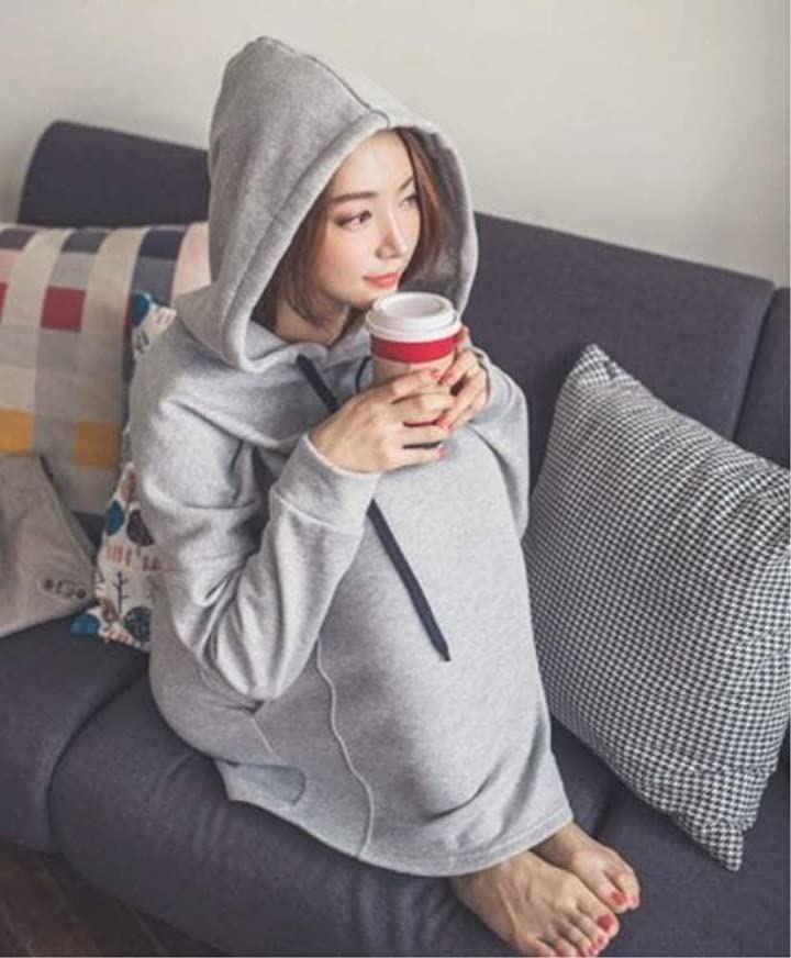 長めのチュニック丈でふんわりAラインだから、1枚でワンピース風に着こなすも*さらに、こだわりはフードをかぶっても尚シルエットがかわいい、ゆったりできる大きめなつくり。